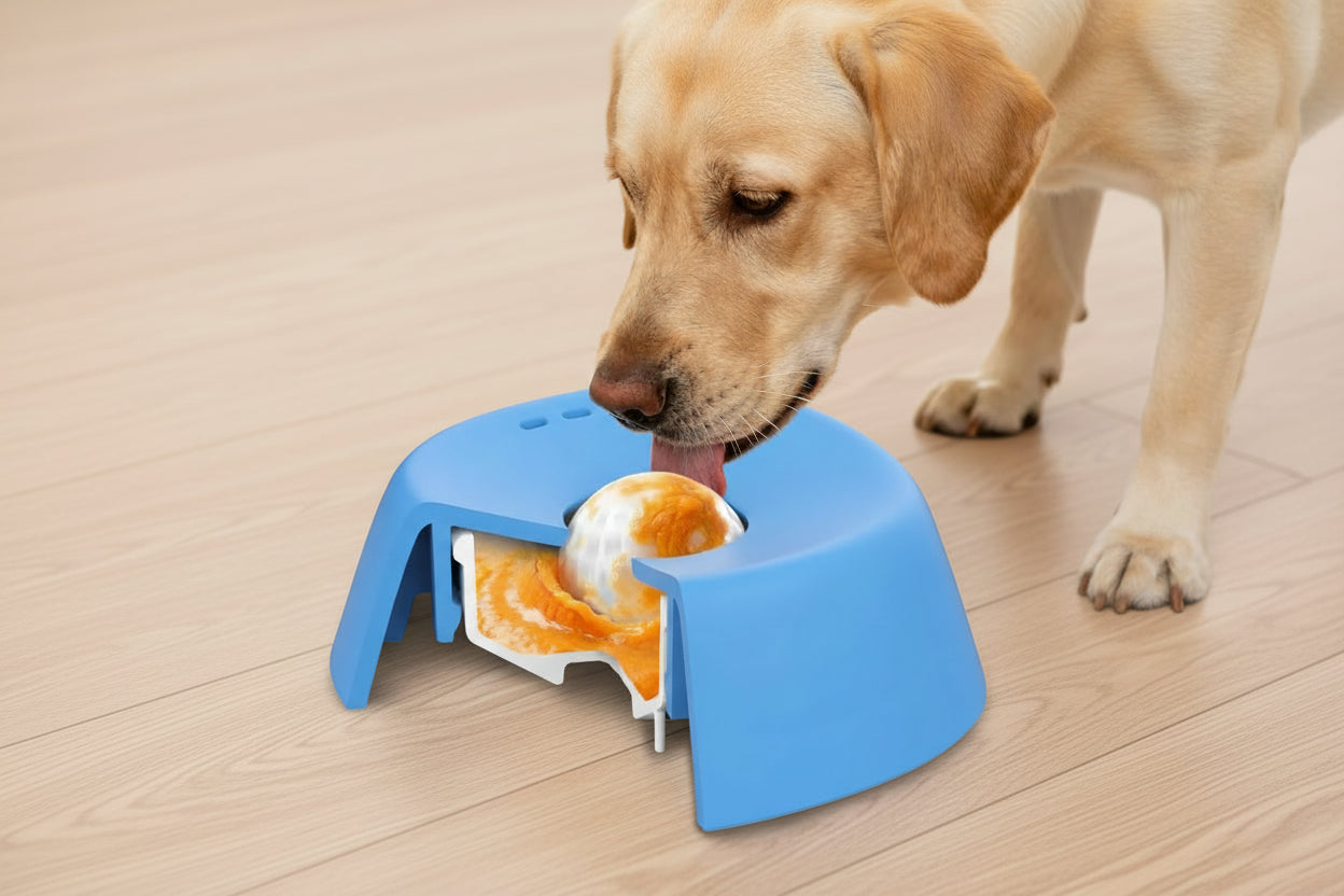 Dzięki możliwości wypełnienia lizaka ulubionym jedzeniem, pies skupia się na spokojnym lizaniu, co dodatkowo wzmacnia efekt wyciszenia i daje mu zajęcie na dłuższy czas.
